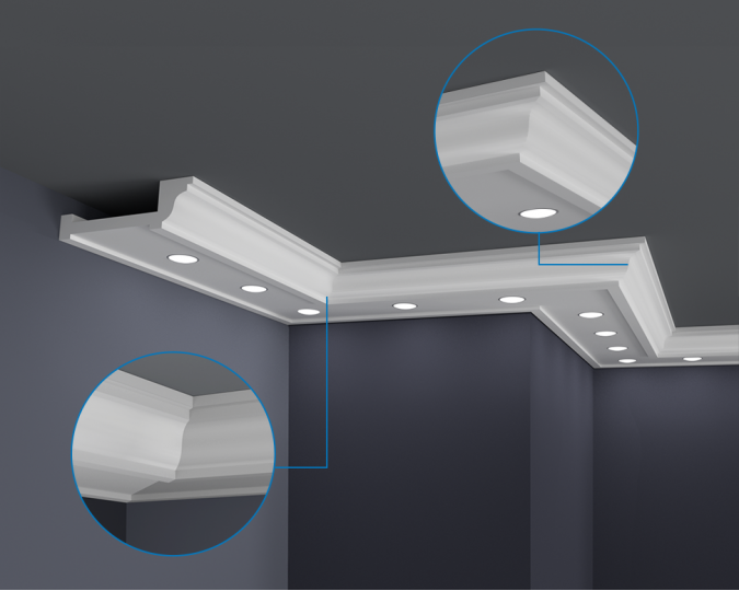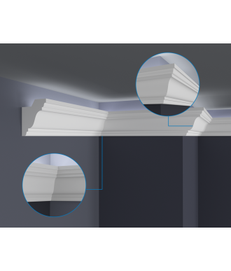 Listwy do oświetlenia led zakupione w naszym sklepie należy zabezpieczyć od wewnętrznej strony samoprzylepną taśmą aluminiową, która ma na celu zapobieganie przenikania światła przez gzyms oraz odbijanie go w kierunku pomieszczenia.