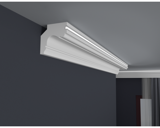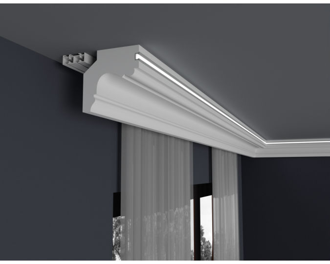 Listwy do oświetlenia led zakupione w naszym sklepie należy zabezpieczyć od wewnętrznej strony samoprzylepną taśmą aluminiową, która ma na celu zapobieganie przenikania światła przez gzyms oraz odbijanie go w kierunku pomieszczenia.