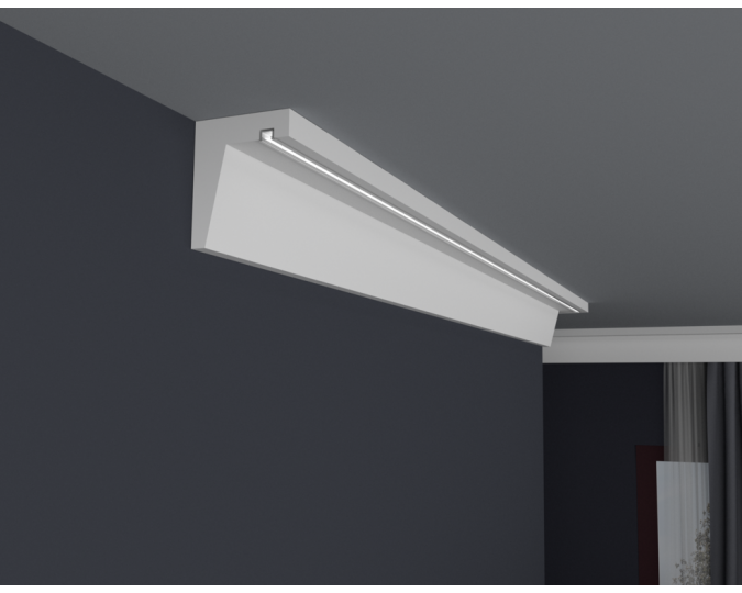 Listwy do oświetlenia led zakupione w naszym sklepie należy zabezpieczyć od wewnętrznej strony samoprzylepną taśmą aluminiową, która ma na celu zapobieganie przenikania światła przez gzyms oraz odbijanie go w kierunku pomieszczenia.
