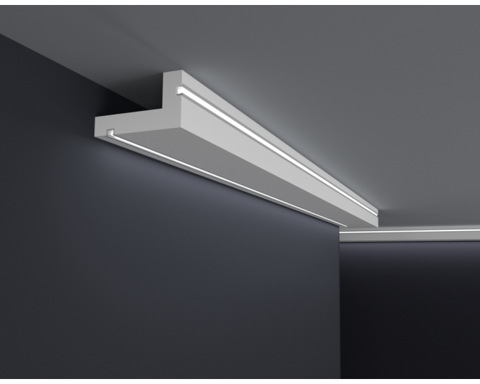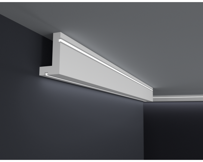 Listwy do oświetlenia led zakupione w naszym sklepie należy zabezpieczyć od wewnętrznej strony samoprzylepną taśmą aluminiową, która ma na celu zapobieganie przenikania światła przez gzyms oraz odbijanie go w kierunku pomieszczenia.