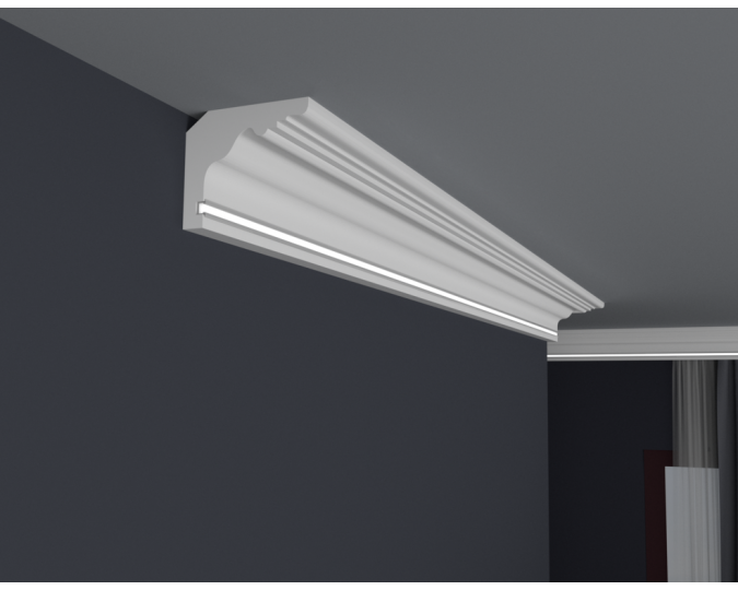 Listwy do oświetlenia led zakupione w naszym sklepie należy zabezpieczyć od wewnętrznej strony samoprzylepną taśmą aluminiową, która ma na celu zapobieganie przenikania światła przez gzyms oraz odbijanie go w kierunku pomieszczenia.