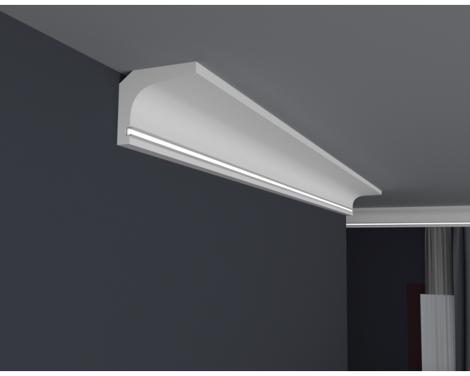 Listwy do oświetlenia led zakupione w naszym sklepie należy zabezpieczyć od wewnętrznej strony samoprzylepną taśmą aluminiową, która ma na celu zapobieganie przenikania światła przez gzyms oraz odbijanie go w kierunku pomieszczenia.