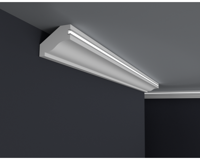 Listwy do oświetlenia led zakupione w naszym sklepie należy zabezpieczyć od wewnętrznej strony samoprzylepną taśmą aluminiową, która ma na celu zapobieganie przenikania światła przez gzyms oraz odbijanie go w kierunku pomieszczenia.
