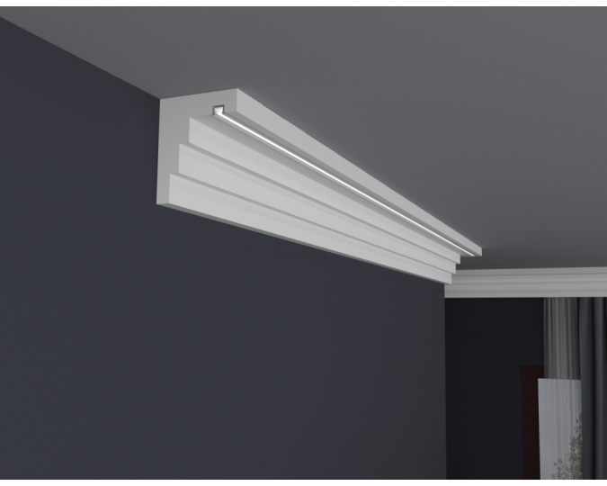 Listwy do oświetlenia led zakupione w naszym sklepie należy zabezpieczyć od wewnętrznej strony samoprzylepną taśmą aluminiową, która ma na celu zapobieganie przenikania światła przez gzyms oraz odbijanie go w kierunku pomieszczenia.