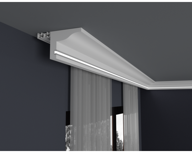 Listwy do oświetlenia led zakupione w naszym sklepie należy zabezpieczyć od wewnętrznej strony samoprzylepną taśmą aluminiową, która ma na celu zapobieganie przenikania światła przez gzyms oraz odbijanie go w kierunku pomieszczenia.