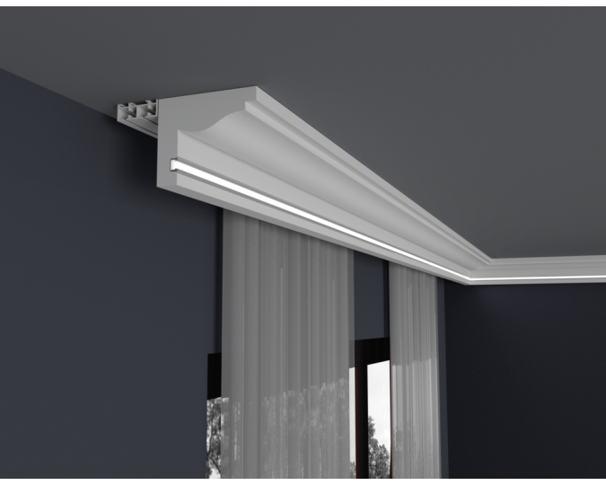 Listwy do oświetlenia led zakupione w naszym sklepie należy zabezpieczyć od wewnętrznej strony samoprzylepną taśmą aluminiową, która ma na celu zapobieganie przenikania światła przez gzyms oraz odbijanie go w kierunku pomieszczenia.