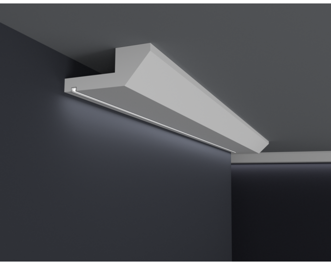 Listwy do oświetlenia led zakupione w naszym sklepie należy zabezpieczyć od wewnętrznej strony samoprzylepną taśmą aluminiową, która ma na celu zapobieganie przenikania światła przez gzyms oraz odbijanie go w kierunku pomieszczenia.