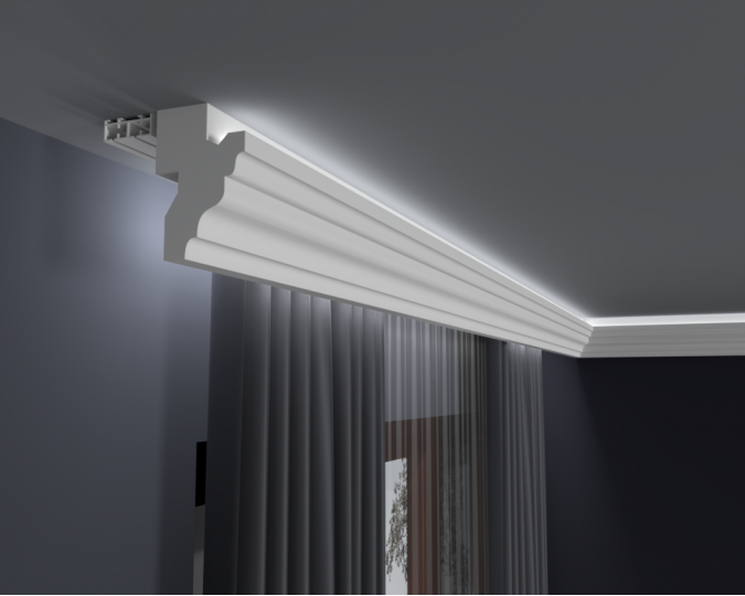 Listwy do oświetlenia led zakupione w naszym sklepie należy zabezpieczyć od wewnętrznej strony samoprzylepną taśmą aluminiową, która ma na celu zapobieganie przenikania światła przez gzyms oraz odbijanie go w kierunku pomieszczenia.