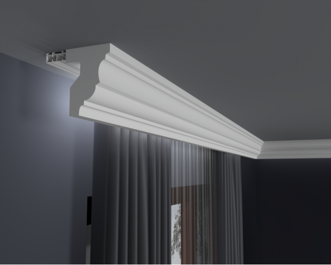 Listwy do oświetlenia led zakupione w naszym sklepie należy zabezpieczyć od wewnętrznej strony samoprzylepną taśmą aluminiową, która ma na celu zapobieganie przenikania światła przez gzyms oraz odbijanie go w kierunku pomieszczenia.